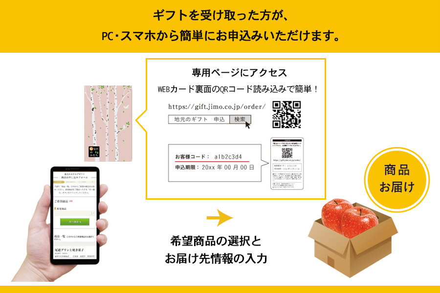 ギフトを受け取った方は、スマホからいつでもどこでも簡単に商品申込ができ、時間も紙資源も無駄になりません。